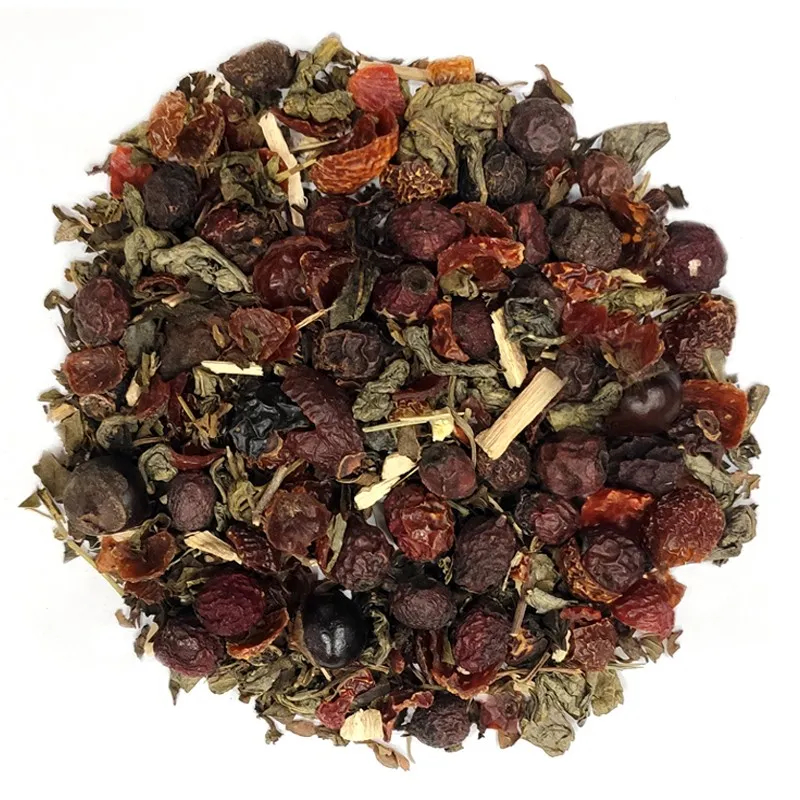 Składniki: Owoc głogu, skórka owocu róży dzikiej, ziele mięty pieprzowej, liść herbaty zielonej, nasiona guarany, korzeń żeń-szenia.